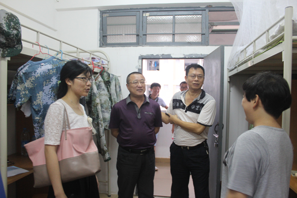进入新生宿舍后,张院长和陈书记一方面仔细询问了同学们的各方面情况,如生活上是否适应,到校的感受等,一方面解答大家生活中遇到的问题,解决宿舍配套设施出现的状况。另外学院领导还提醒大家要提高自我保护意识和警觉意识,不轻易相信来宿舍推销商品的人员,谨防上当受骗。要注意宿舍的安全问题,出门关好门窗,妥善保管自己的贵重物品。与此同时,张院长和陈书记还鼓励大家要多交流沟通,尽快适应大学的生活;鼓励大家相互帮助、相互关爱、相互体谅,建立和谐的人际关系;珍惜大学生活,努力学习,不断提高自己的实践能力、表达能力、人际交往能力和组织能力等,并在专业上有突破性的提高,成为社会的有用之才。