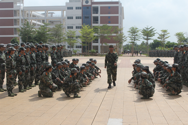 早上8点,工程技术学院的新生们都穿着整齐的军训服列队到学院经贸广场集合参加一年一度的新生军训动员大会。之后,由教官及各班代理班主任带领新生到各班的军训场地准备开始训练。10:30,学校里面已可随处听到教官们喊口令的声音,看到了由身着军装的新生们组成的训练方队,他们都怀着无比激动和新奇的心情投入到自己的训练生活中。由于是军训的第一天,所以训练强度并不是很大。今天的训练内容有五个,分别是:站军姿、稍息立正、胯力立正、蹲下起立、四面转法,这些内容都是最基础的。同学们都很认真、严肃对待教官教的动作。