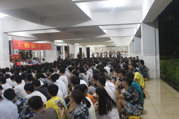 9月15日讯(工程技术学院 李京京报道)为了让2015级新生更好的融入大学生活,我院特于9月14日晚19:30在2栋教学楼下举行了工程技术学院2015级新生见面会。出席此次会议的嘉宾有:工程技术学院张克明院长、工程技术学院陈继敏书记、工程技术学院王忠副院长、工程技术学院党政办公室主任周波老师、副主任韩昌豪老师、教学负责人卜毅男老师、实训室负责人林圃老师、教学秘书龙腾老师、吴明珠老师,工程技术学院一年级新生辅导员梁其钰老师、肖洁老师,以及其他年级辅导员刘芳老师、代晓明老师,以及工程技术学院专业负责人和校内导师(班主任老师)。本次会议由2015级汽车服务与营销专业的新生周春玲主持。
