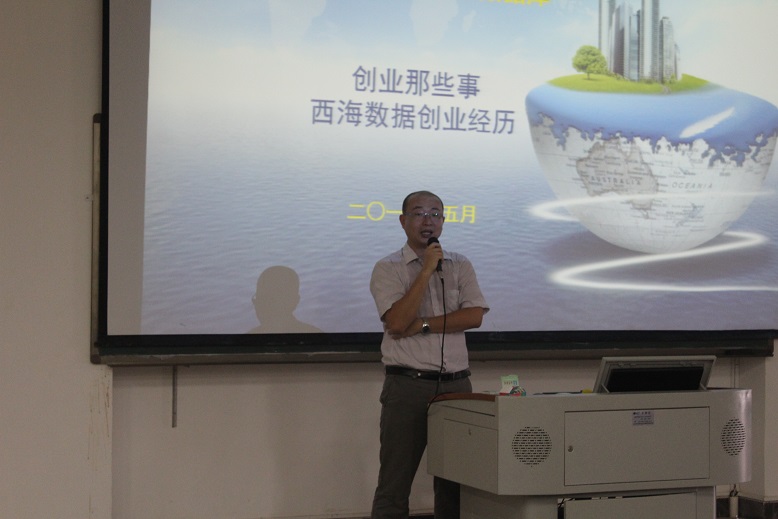 肖艇先生以自身为例子,分享了海口诺塞克西海数据科技有限公司成立的过程,他与学生共同分享了创业的宝贵经验,并向学生提出了关于创业的宝贵建议。他建议学生创业可以与不同专业的、不同层次的、但有共同理想的又志同道合的学生组成合伙人,取得政府优惠政策扶持,一同创业,成功机率就高;而那种家族式资金捆绑式创业,失败机率大并容易拖累整个家族。