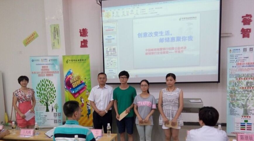 2015年6月9日,中国邮政储蓄银行校园宣讲活动在我校顺利结束。“邮储银行杯”第八届全国大学生网络商务创新应用大赛面向全国本科、高职各专业在校学生,是由工业和信息化部指导、教育部支持、中国互联网协会主办、中国邮政储蓄银行主协办的全国性大学生互联网公益赛事。自从2007年首届大赛举办以来,已连续成功举办了七届。参与大赛的高校超过2000所,累计报名参与的大学生超过50万人,辐射的大学生范围超过200万人,是目前国内参与人数多、影响力广的全国性大学生互联网公益赛事。