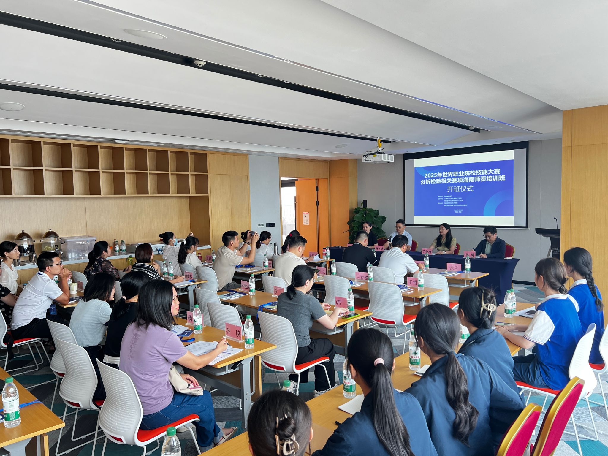 开班仪式上,洋浦经济开发区高级技工学校教师、海南省中职分析检验技术工作室负责人张兰老师担任主持,为培训拉开序幕。洋浦技工学校党支部副书记、副校长杨本道发表热情洋溢的开班致辞,他对参训学员表示热烈欢迎,强调本次培训对提升海南职业院校分析检验教学水平、助力参赛备赛的重要意义,激励大家在培训中积极交流、学有所获。