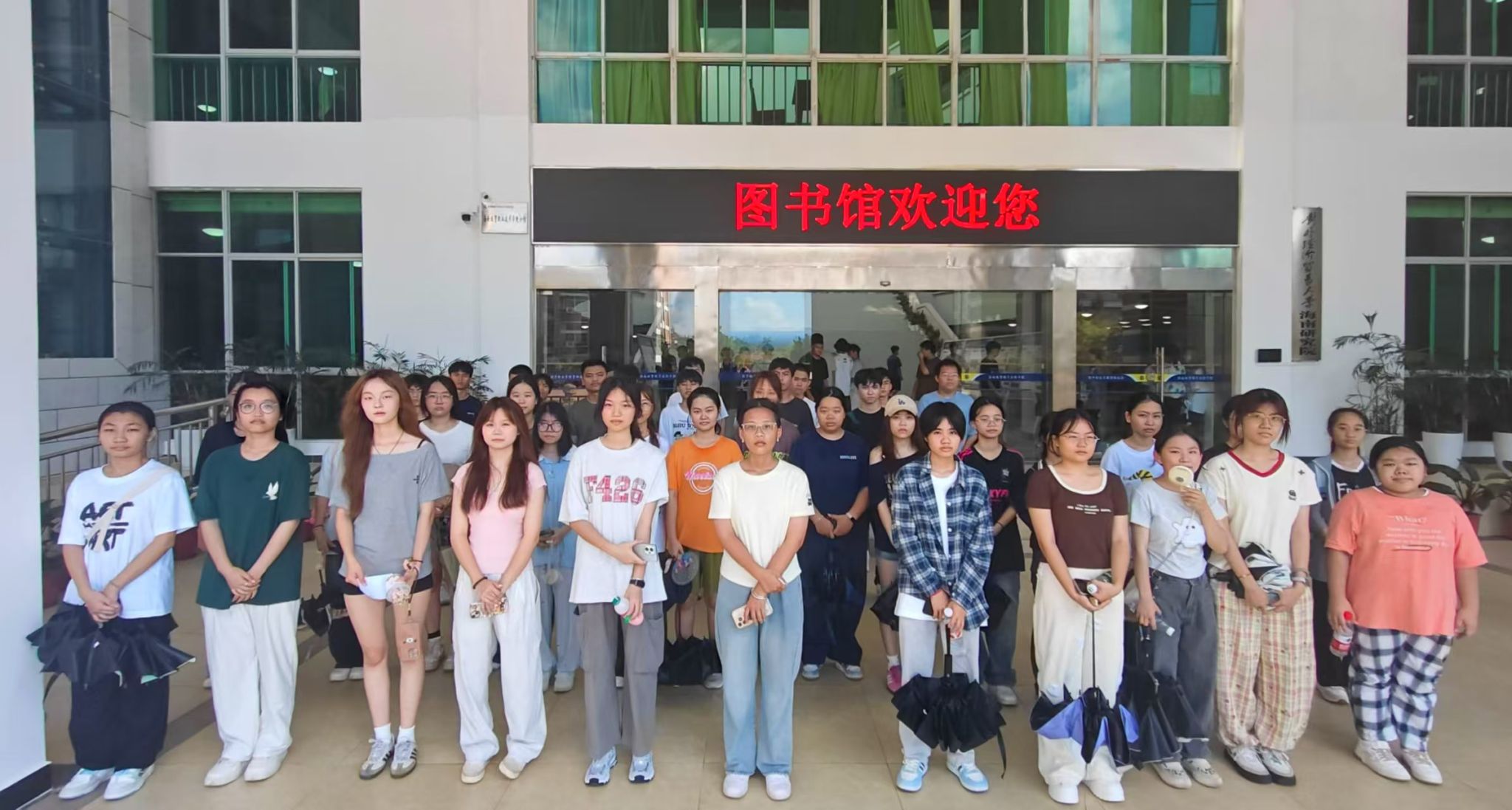 探索的最后一站是图书馆,从运动场地步行即可到达。馆内藏书浩如烟海、电子资源完备,不管是日常查阅资料还是期末复习,都能满足需求。安静的自习区为学习营造了良好环境,代班贴心告知新生,后续会统一组织办理借阅证,方便大家随时沉浸书海。