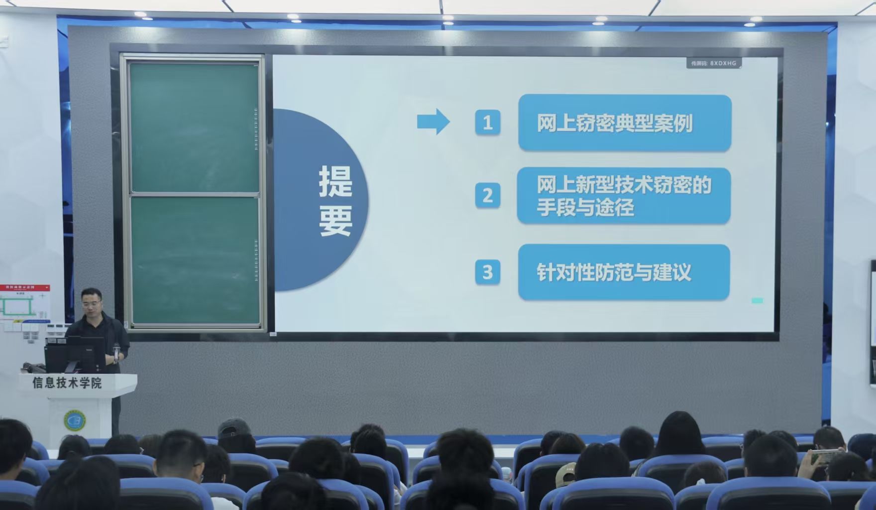 为提升2025级新生网络安全意识,防止校园内再次出现学生因随意扫码、连接不明WiFi泄露个人信息等安全事件,10月21日下午,太阳网集团tcy8722特邀海南大学郭渊博教授,在4-215教室举办“网络新型攻击窃密手段及对策”专题讲座,太阳网集团tcy8722全体2025级学生到场参加。