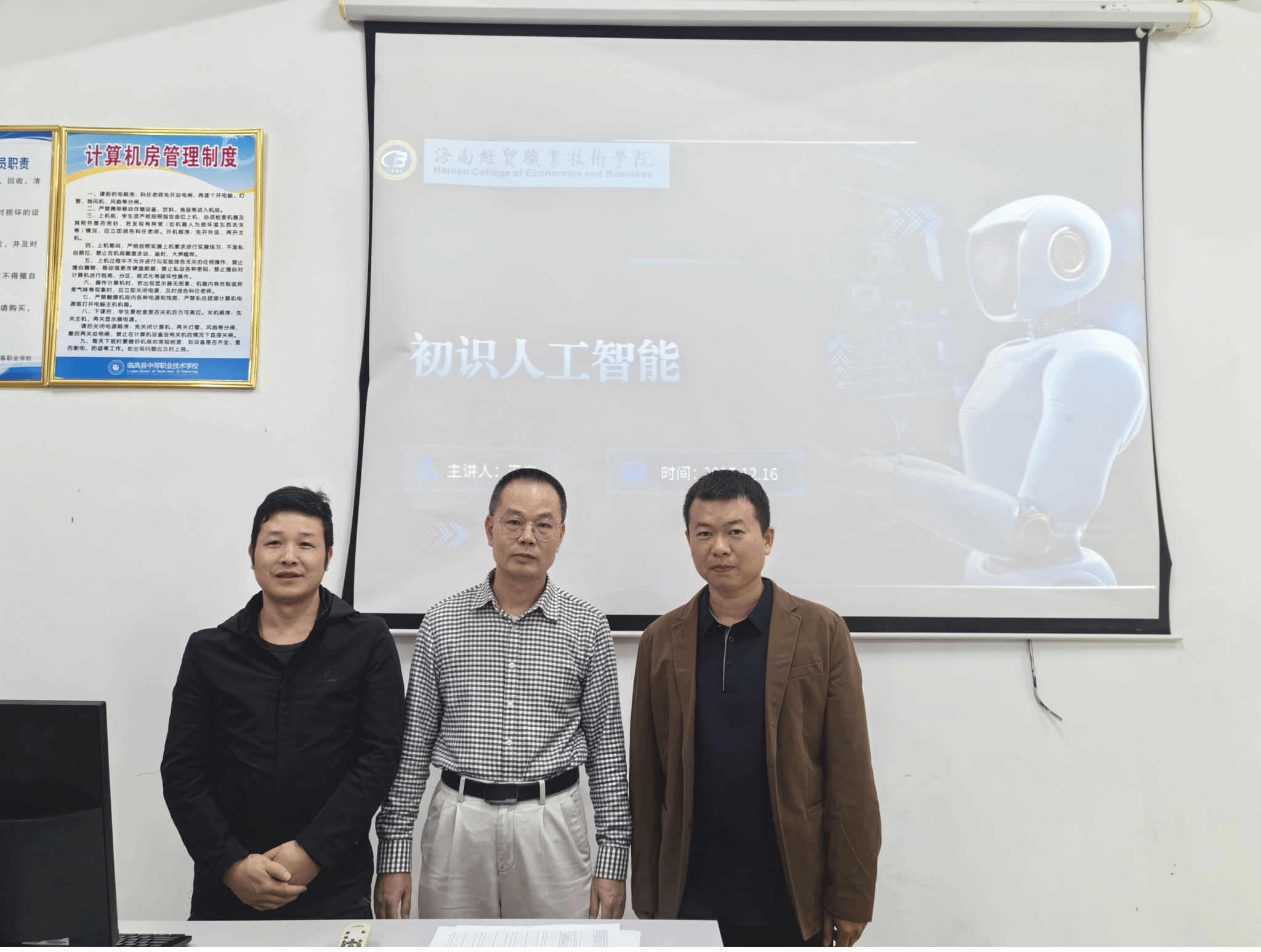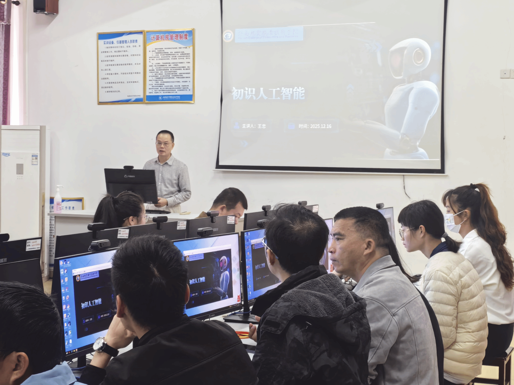 为深入贯彻落实省委人才办《关于开展2025年专家团队巡回帮扶活动的通知》要求,推动人工智能技术与职业教育教学深度融合,12月16日下午,应临高县中等职业技术学校邀请,我院人工智能领域专家王忠教授、康东副教授专程前往该校,开展了一场主题鲜明、内容扎实的AI教学能力提升培训。临高职校全体专业课教师及教学管理人员齐聚一堂,共同参与了此次学习。