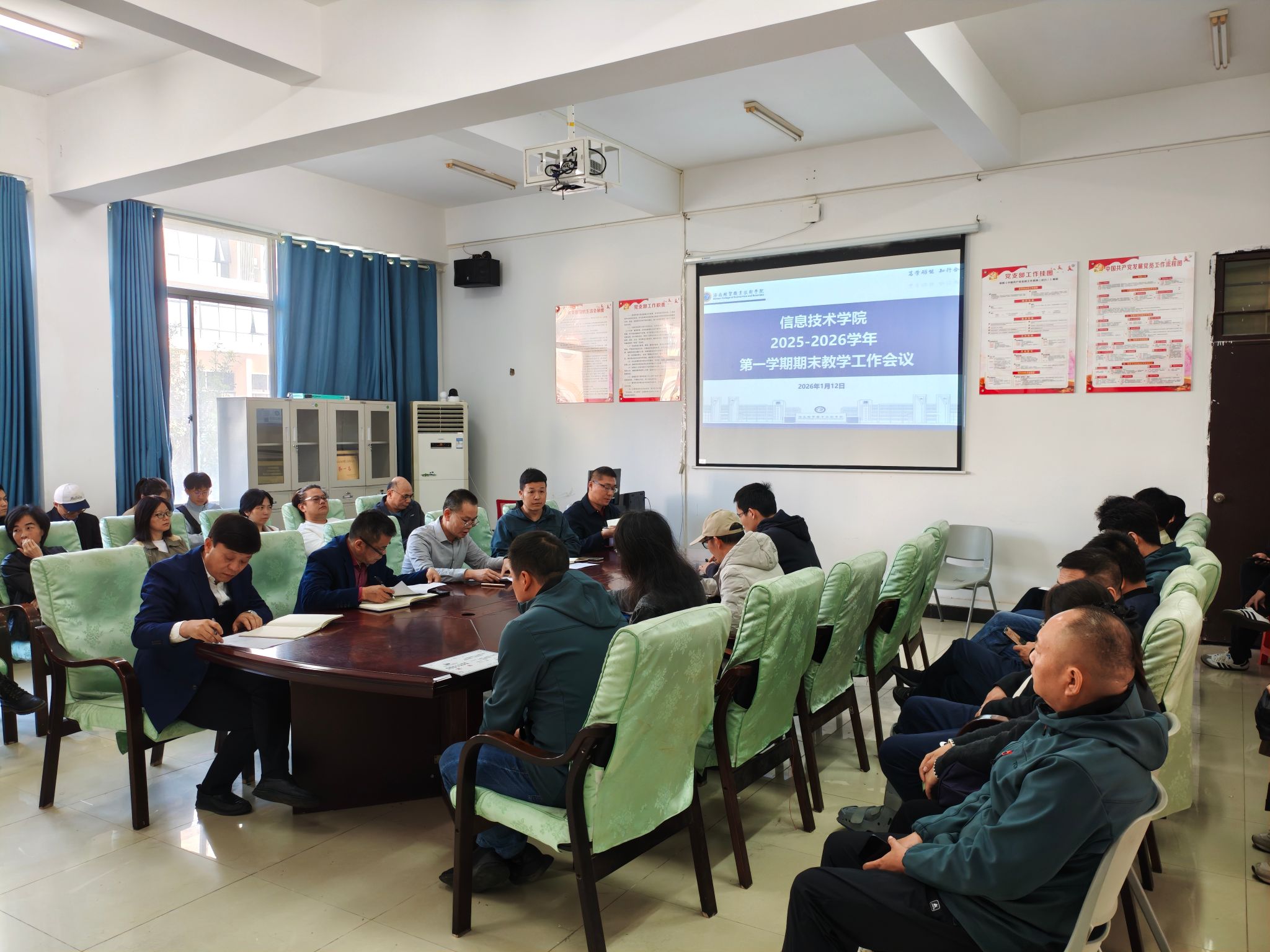 2026年1月12日,太阳网集团tcy8722在4-213会议室召开2025-2026学年第一学期期末工作会议。会议由学院党总支书记符胜主持,学院党政领导班子成员及全体教职工参会。