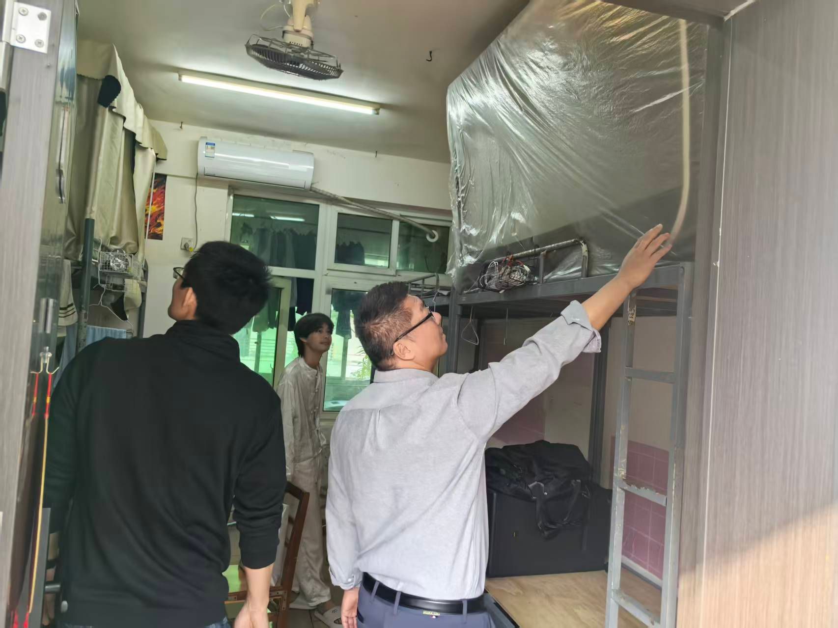 检查过程中,学工队伍逐一走访各楼栋宿舍,细致查看学生离校进度,认真核查宿舍内水电关闭、物品归置、卫生清洁等情况。针对部分尚未离校的学生,黄守官副书记耐心叮嘱,离校前务必切断宿舍内所有电源,拔掉各类电器插头,杜绝消防安全隐患;同时反复强调返程途中的安全事项,提醒大家妥善保管个人行李和贵重物品,遵守交通规则,注意旅途安全,抵达目的地后及时向辅导员报平安。